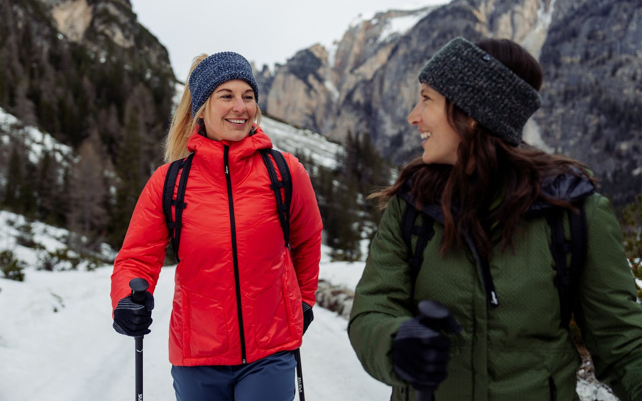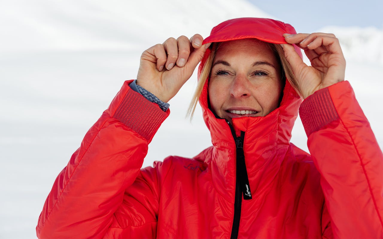 In unserer Alberta Light ReMOCA Pad® Jacket verarbeiten wir 80 Gramm unserer innovativen, eigens entwickelten ReMOCA Pad®-Isolierung. Das macht unsere Isolationsjacke ultraleicht und so klein komprimierbar, dass sie bei Nichtgebrauch in der eigenen Packtasche verstaut werden kann – und zur absoluten Standardausrüstung eines jeden Bergabenteuers wird. Das ReMOCA Pad® Isolationsmaterial, hergestellt aus Restbeständen alter POMOCA-Skitourenfelle in Kombination mit recyceltem Polyester und recycelter Baumwolle, punktet trotz seines sehr geringen Eigengewichts mit hervorragenden Wärmeeigenschaften. Mit den für LaMunt charakteristischen Ali-Shape-Steppnähten, welche die Körpersilhouette sanft umschmeicheln, dem verlängerten Saum auf der Rückseite für mehr Schutz sowie den seitlichen Durastretch-Einsätzen bietet die Jacke eine schützende, bequeme und dennoch feminine Passform. Über die Smart-Fit-Reißverschlüsse lässt sich die Weite zusätzlich an darunter getragene Schichten anpassen. Die isolierte Kapuze mit weich gefüttertem, hohem Kragen umschließt das Gesicht und hält ebenso wie die elastischen Ärmelbündchen Wind und Nässe draußen. In den zwei Seitentaschen finden Kleinigkeiten Platz, in der geheimen Innentasche bleibt das Handy sicher verstaut. Die Alberta Light ReMOCA® Jacket kann sowohl als Midlayer als auch als eigenständige Jacke getragen werden – und wird auch weit über die Wintersaison hinaus zur liebsten Isolationsschicht.